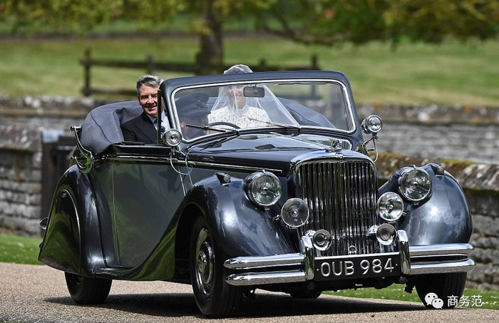 在进入教堂时,Pippa和父亲坐着一台1951年产的黑灰色捷豹Mk V敞篷车来的。这台车在二手车网站上的售价大约是8万英镑(大约71.82万元)。