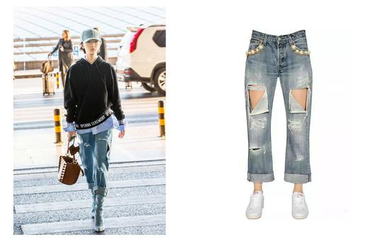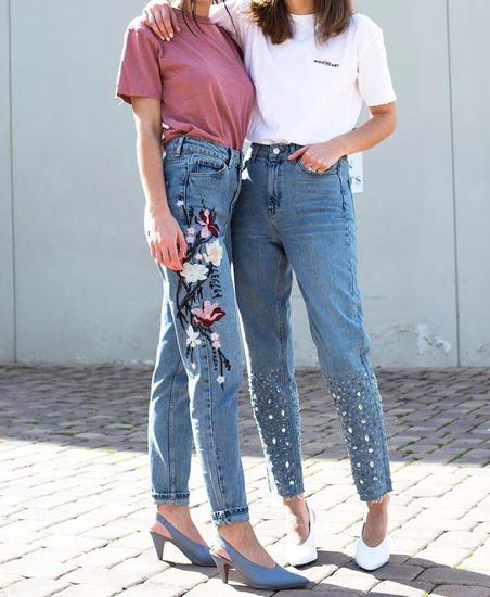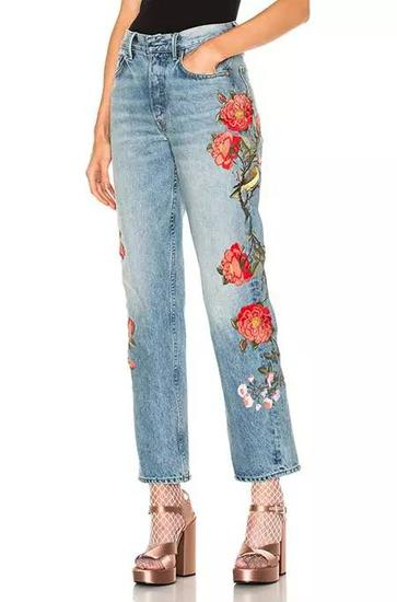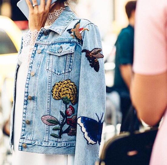 无论是牛仔上衣还是牛仔裤,都不再只是循规蹈矩,而是添加更多装饰性的设计,像今年非常流行的刺绣,趣味性十足的贴布,包括能给牛仔带来不一样魅力的钉珠等装饰物。这种款式的牛仔裤在街头必定是时髦吸睛的存在。