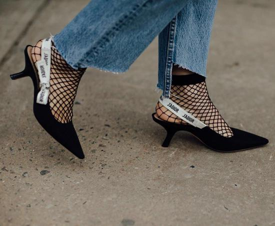 新一季不少牛仔裤都给出了这样的搭配,与时髦渔网袜组合,这样的裤型是不是比那种超级紧身的牛仔裤搭配起来,没那么辣眼睛?
