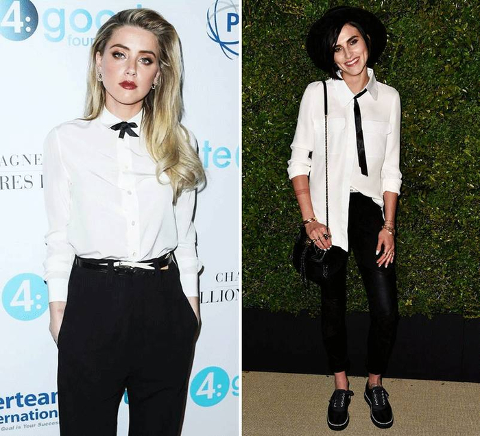 穿纯色衬衫的时候,不妨在领口动点小心思,一条丝带就能巧妙点缀。
