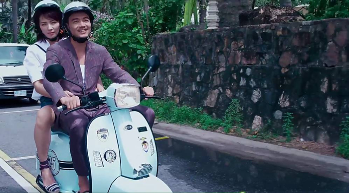 当然,这个过程中小包总也不是没有个出街的时候,他还是会延续自己的雅痞调子,穿着紫色的休闲西装骑摩托车载安迪满大街兜风,内搭的白tee和露脚的凉鞋让他在海岛自然保持了几分体面,却终究是融入当地的。