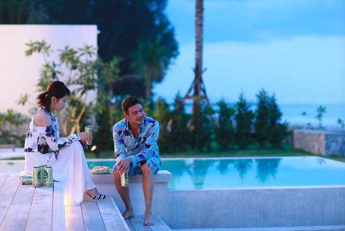 到泰国度假之后,小包总在酒店的打扮都以走家居睡衣风,不过这本来就符合当下的场景。深蓝色家居服套装还有点酒红色印花,低调里还是透露着那么一点不安分。