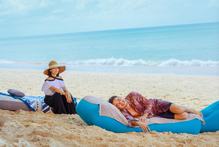 你看他后来在沙滩上嬉笑的时候只采用了上装搭配,并不减休闲意趣,带来的是更加浓烈的异域荷尔蒙。