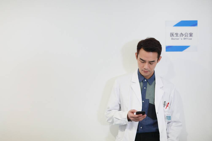作为医生,他最常见的look当然是白大褂。(我知道你们对这双手的特写期盼很久了)