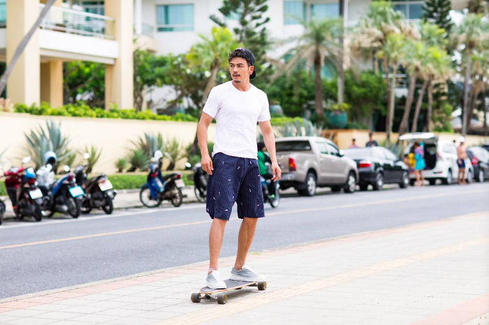 他也不是没有少年样的时候,穿着简单白tee踩滑板的样子,更像是原作小说里那个25岁意气风发的青年模样。