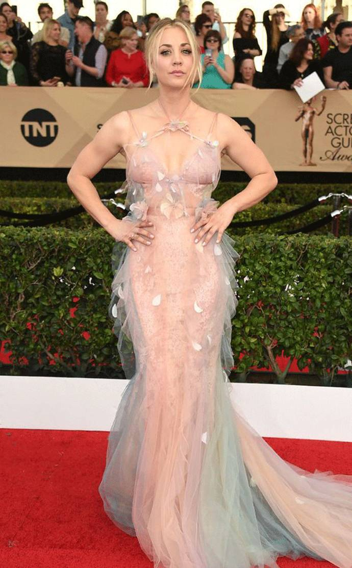 在红毯上或出席活动时, Kaley Cuoco 都会毫无保留的展示自己的身材,深 V 、透视都是必不可少的元素,要的就是这份自信,的确很美。
