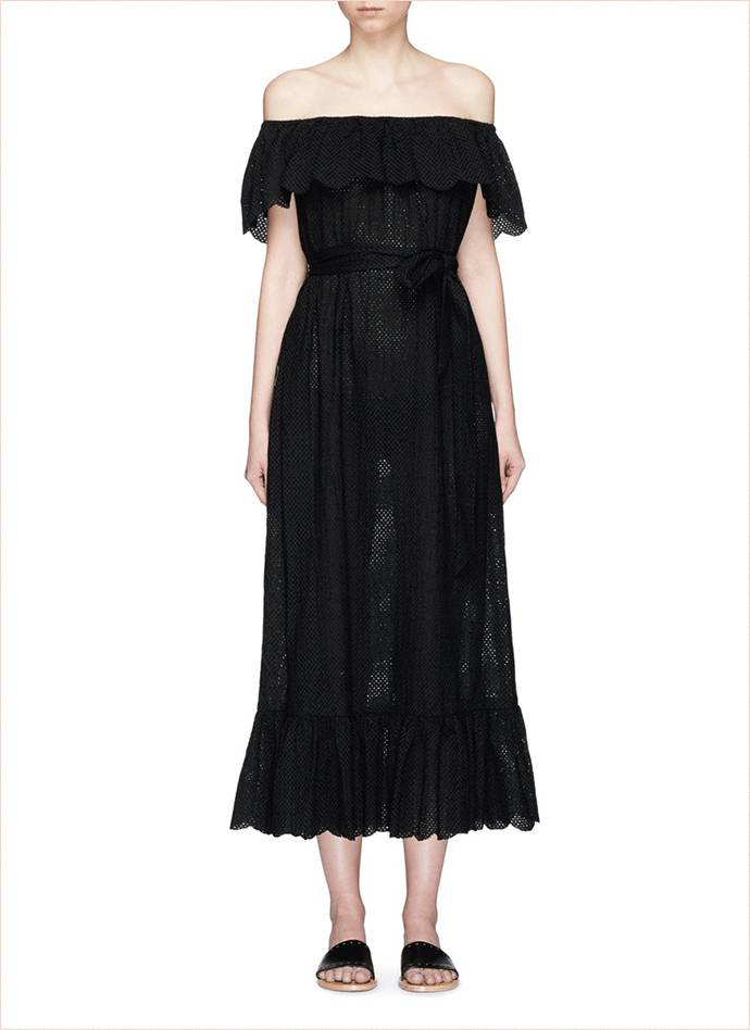 印花连身裙,不论是一字肩还是小 V 领,都极具女人味,裹身款又能完美展示曲线,微胖你的也可以大胆尝试。