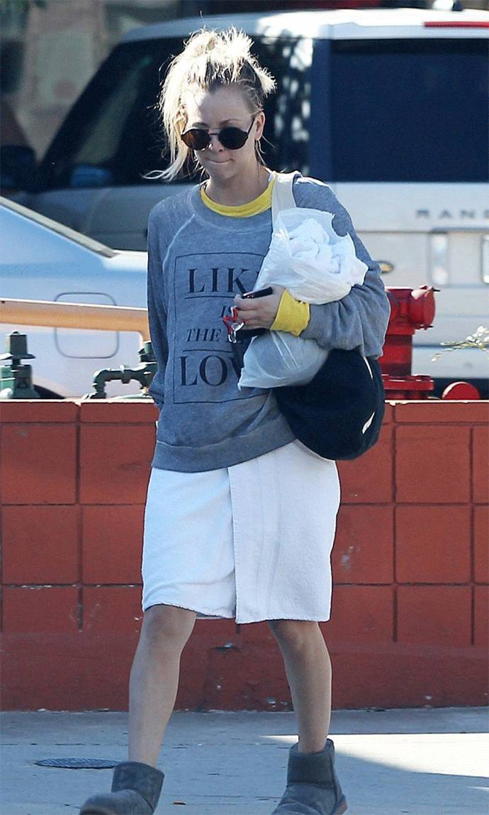 平日中, Kaley Cuoco 出街装比较随性,但仍然能看到性感的影子。