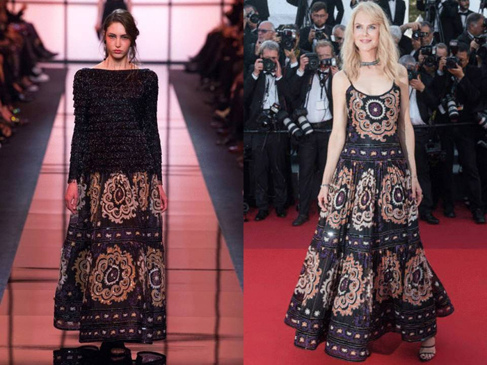 红毯女王 Nicole Kidman 这一次发挥稳定,Armani Privé 2017 春夏高级定制礼服简洁有力,不同于其他女星的素色选择,她这身精彩的印花设计也成为红毯上少见的时尚元素。