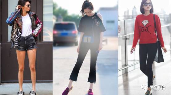 女明星出街,其实也讲究鞋子的舒适。百搭的小白鞋出镜率最高。