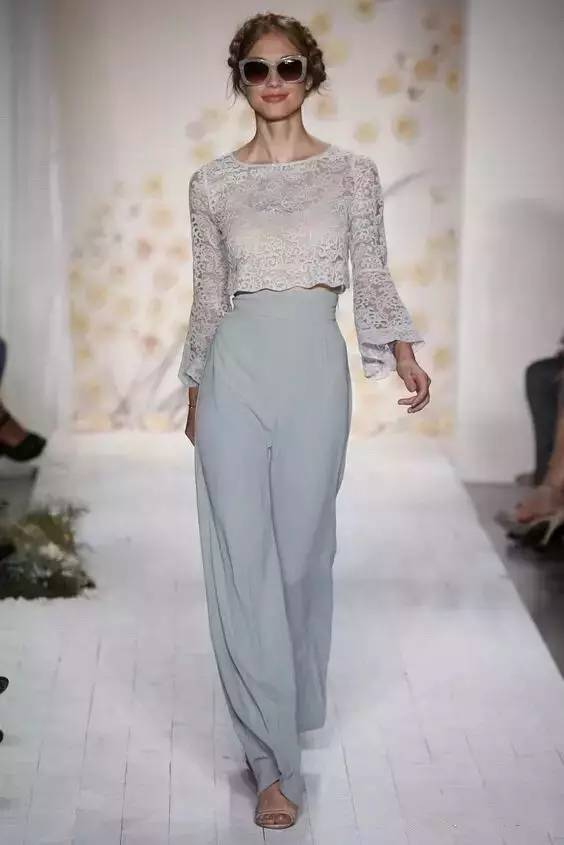 高腰阔腿裤+上下同色系,看起来不到一米八算我输!