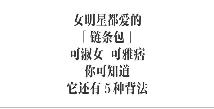 前段时间一组景甜在洛杉矶的时髦街拍中,我们还看到了景甜对链条包的三种背法演绎,但你知道么?其实链条包的背法有 5 种!!