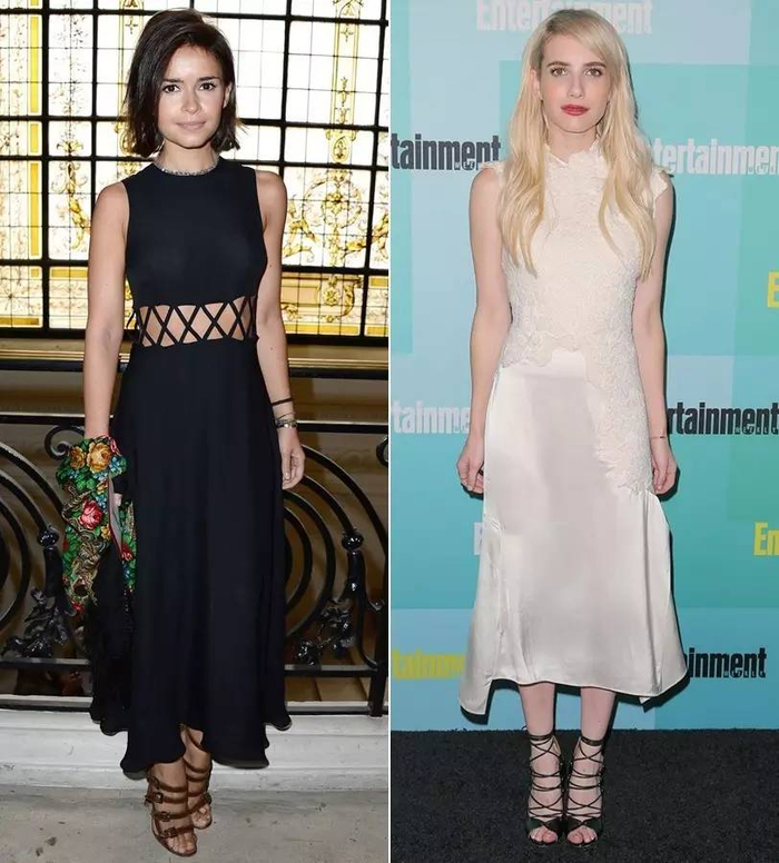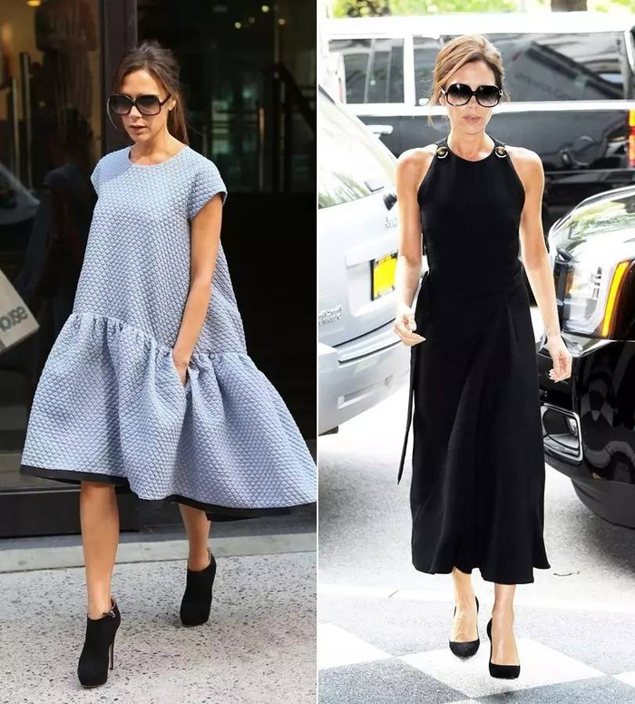 还有一些迷笛裙,虽然也是A字裙,但因为材质软、臀部设计比较圆,下摆又开得比较大,即使是大高个,穿上去也会显胖和矮。右边的Maria Duenas Jacobs个子其实不高,但两人的视觉效果差不多。▼