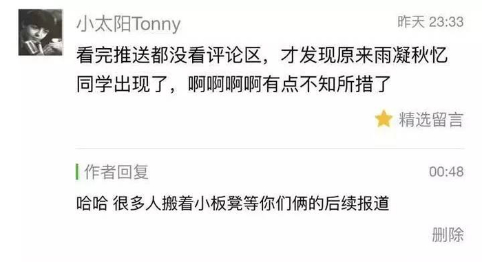 而小太阳TONNY同学也看到了雨凝秋忆的回复,他说有点紧脏有点不知所措。我有个不成熟的小建议,不如你们互留微信好不好,哈哈哈~▼
