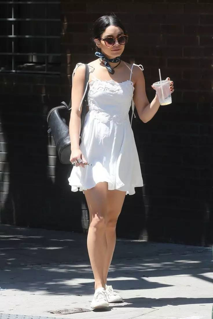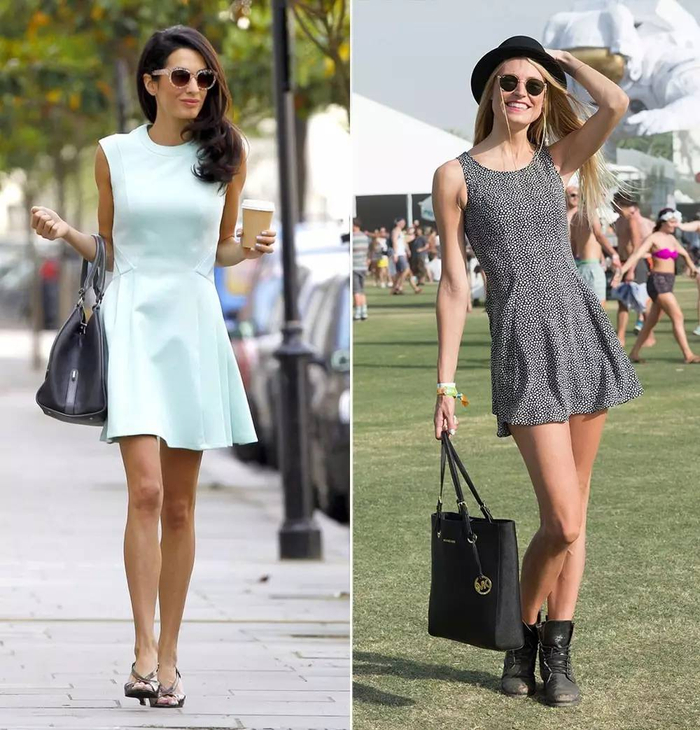 其次下摆略呈A字型,裙长短,整体拉长了比例。加上露肤面积大,视觉上看起来就会很清爽。哈比人就算搭个平底鞋穿也不会显得很矮。▼