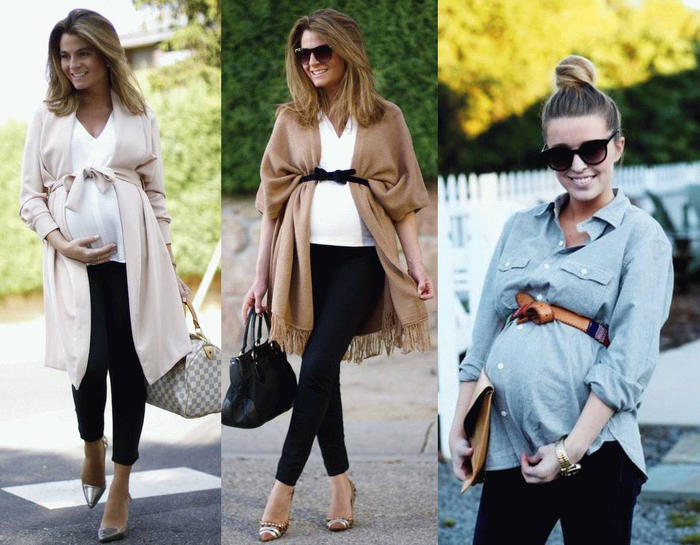 孕妈们在考虑如何穿搭才能显得自己更好看、更时髦甚至更显瘦时,必然要考虑两个完全不同的穿搭模式:你是愿意通过打造合身的造型来突出身材特点?还是通过宽松宽大的衣衫进行遮挡?这是两种完全不同风格的穿搭模式,所呈现出的状态也是全然不同: