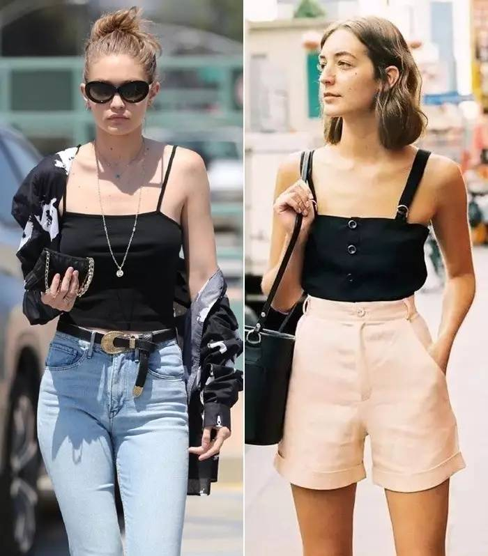 吊带上衣就很百搭了,几乎不挑下装,甚至还能给一些厚重的裤装带来清凉感。