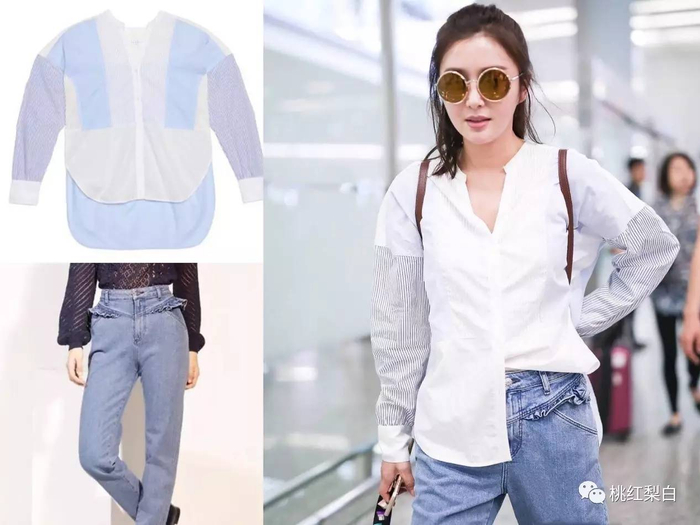 这一身单就颜色上来说,看起来还是蛮舒服的,但就本身清瘦的身形来看,这一套还是把她往臃肿里穿了。和上面的周笔畅问题一样,上面的衬衫已经是宽松的款式了,下面就要尽量选择修身一些的裤装,这样整体就不会有身高下拉的膨胀感。