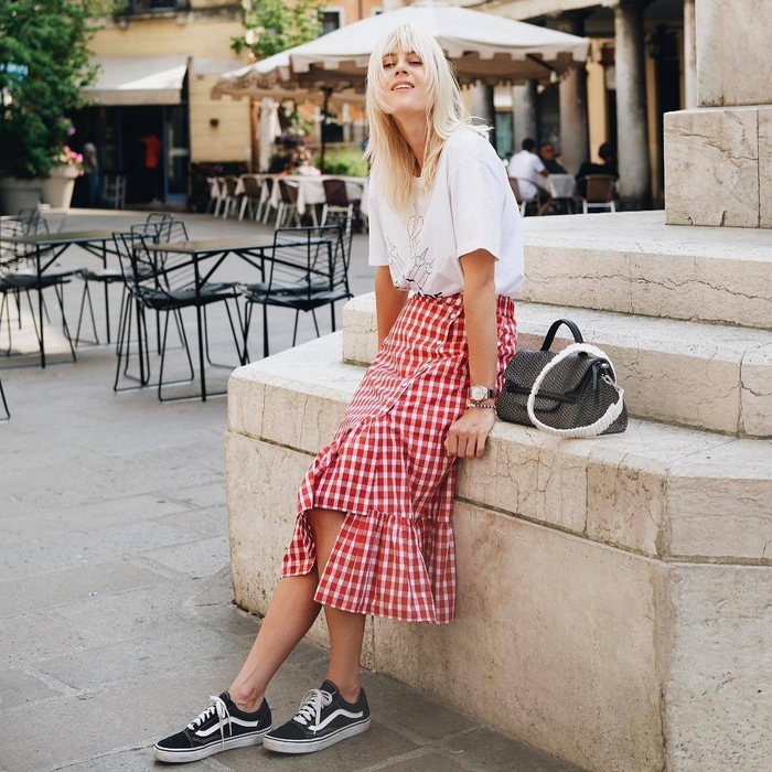 时尚编辑Veronika Heilbrunner最爱用大裙子搭配帆布鞋穿。▼