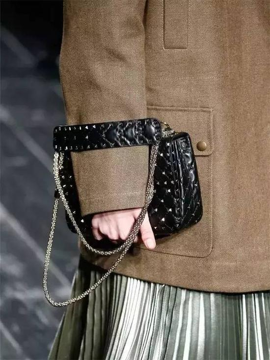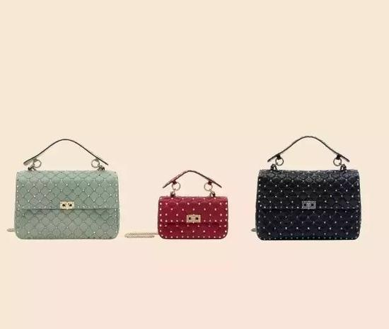 Rockstud系列的一大亮点是包包,一圈铆钉围边非常有辨识度,
