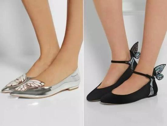 有平底鞋,左右脚的图案拼起来刚好是一只蝴蝶▼