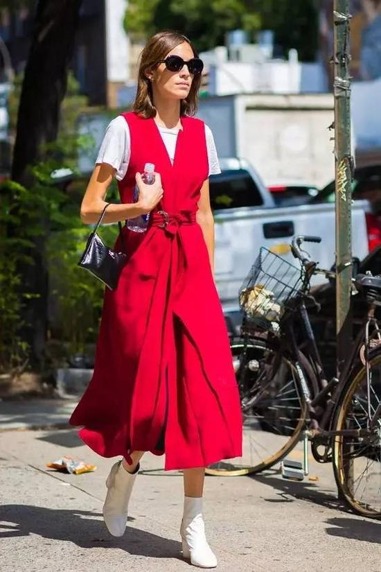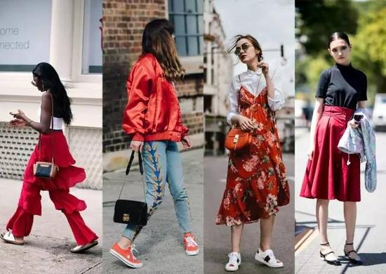 当然,除了以上三种红色占比搭配法则,红色作为点缀色也是不错的选择。一烈红唇、一头红发甚至一部红色外形的手机都能做到提亮整个造型的作用。