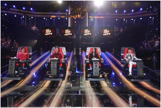 导师席在4.5米高的位置,面前被一块屏幕遮挡看不到学员——盲选依旧是盲选。一旦遇到心仪的学员,就拍下椅子前的红色按钮,导师战车就将从4.5米高的轨道顶端滑下,以每秒1.2米的平均速度“冲刺”到学员面前。