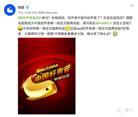 我们不如来开开脑洞,帮微鲸电视畅想下,万一官司又有转折,咱好声音能改啥名。
