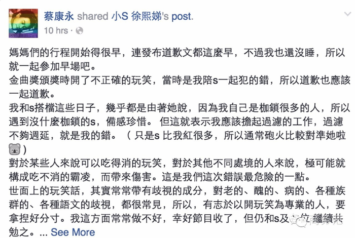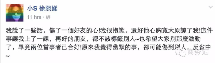果然,今天凌晨小S就早早的发布了道歉,表示“再好的朋友也不该标签别人”