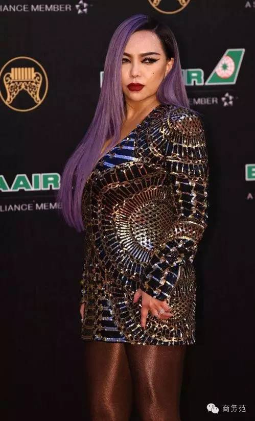 阿妹的发挥很稳定,一席紫色的梅超风长发,依然保持上红毯必走火入魔的态度来到了金曲奖。