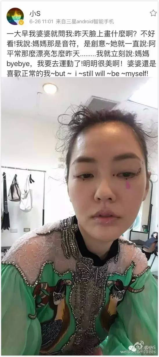小S首先为金曲奖的妆容发了一条微博,表示了一下脸上妆容的含义,不少人说小S得罪了化妆师…… 范主直男朋友更毒舌:这是家暴妆吗?_(:зゝ∠)_