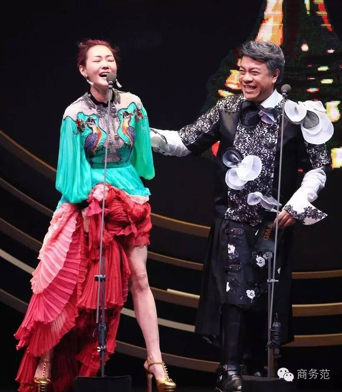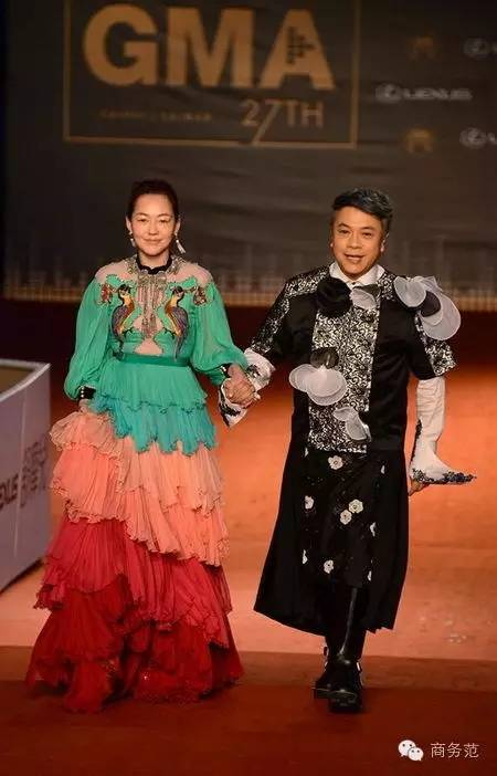 再看看金曲奖时小S的礼服,2016 Gucci F/W 系列红绿撞色渐变宝塔裙。