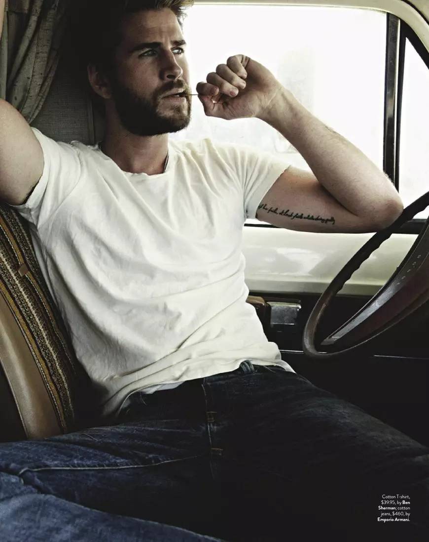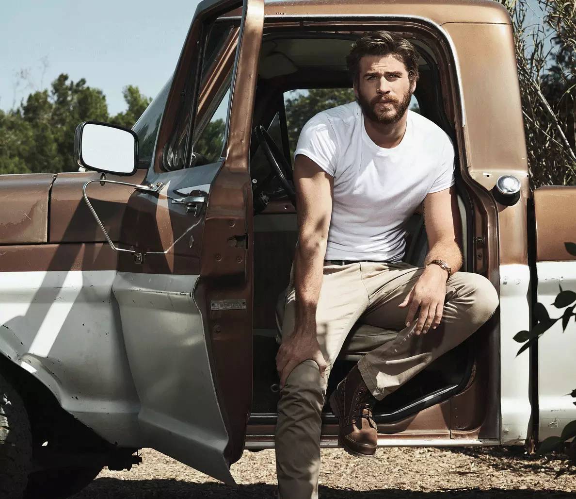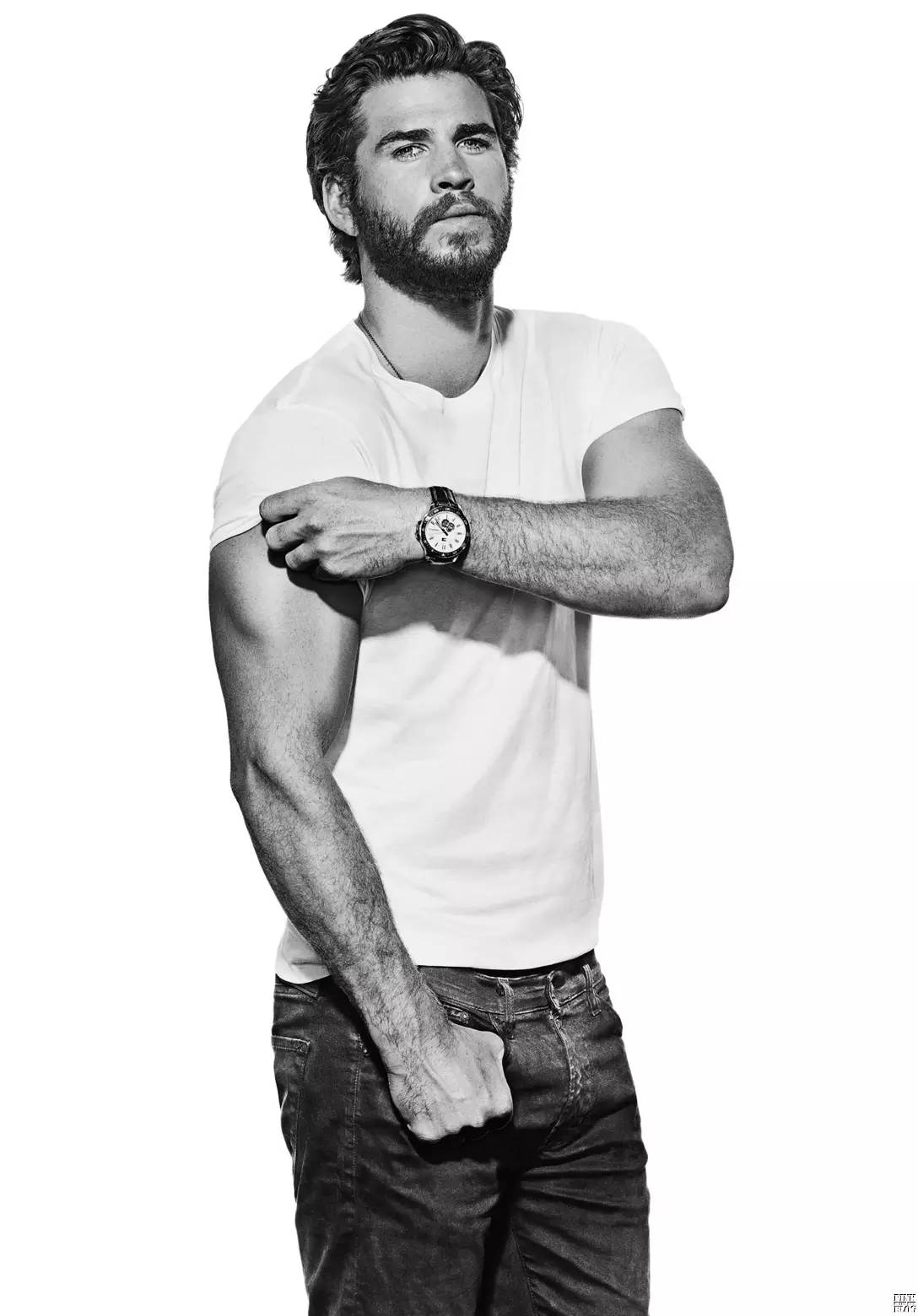2014年,Liam Hemsworth终于意识到形象问题,脱掉土到沟里的格子衫,换上干净的白T恤并蓄起胡子。