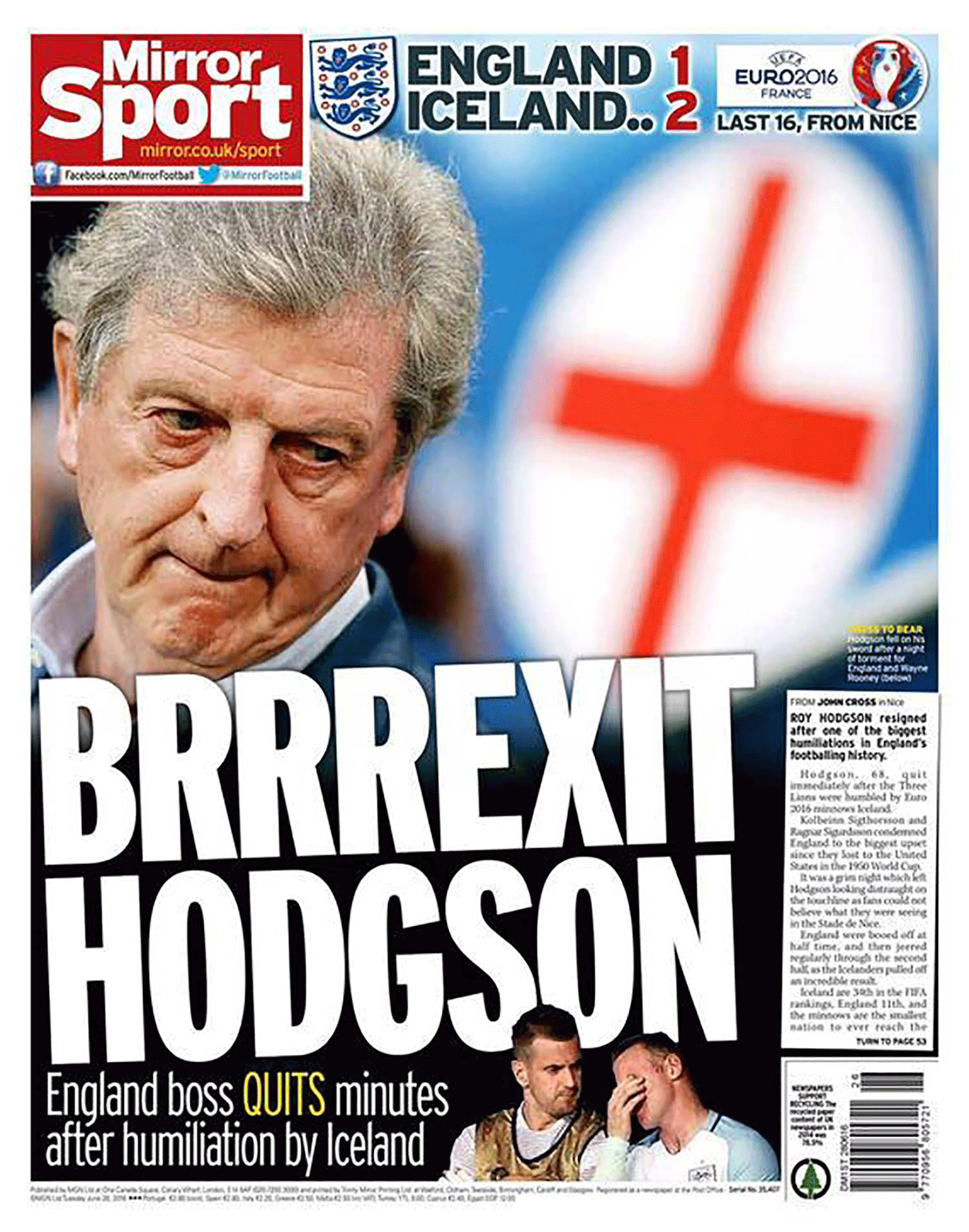 甚至搬出意指英国(Britain)与离开(Exit)的脱欧专有词:BREXT,跟上主教练Hodgson的名字,意思简单明确——