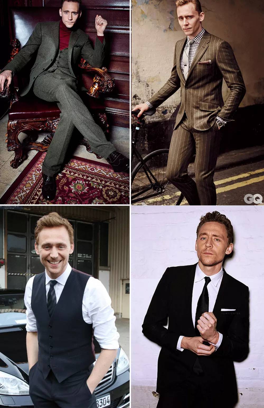 相比之下,刚刚拿下美国第一大长腿霉霉Tylor Swift的‘Thomas William Hiddleston - 抖森’,则经常背头后梳,全身正装,一副英国绅士模样,辨识度极高: