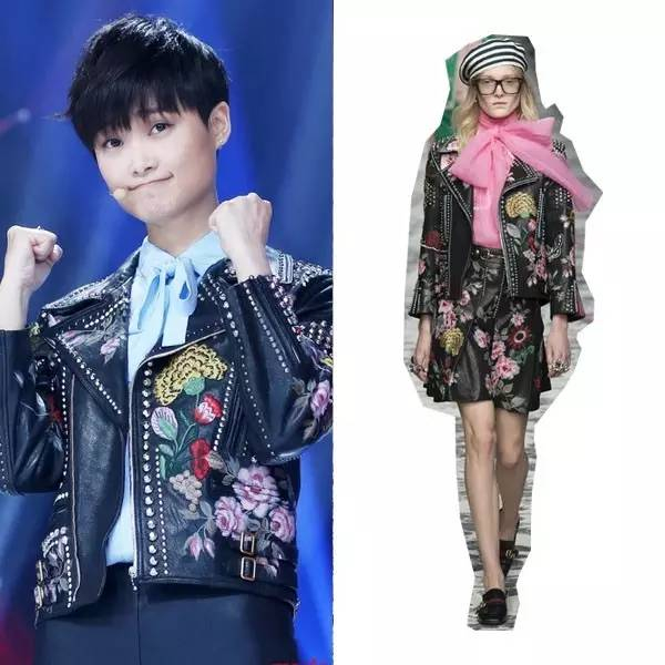 黑色皮夹克处处都有,唯有这一件最独特,刺绣的细节非常丰富,为李宇春整体造型的丰富度增色不少。