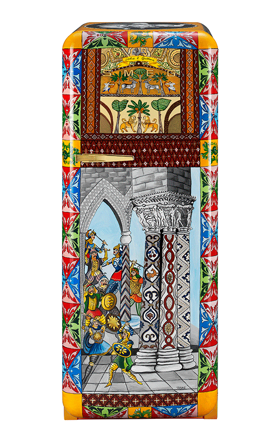 Dolce & Gabbana俩人总嫌弃冰箱不够时髦,索性就帮SMGE设计了一款西西里风的冰箱。