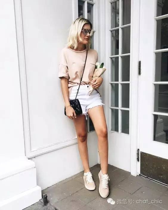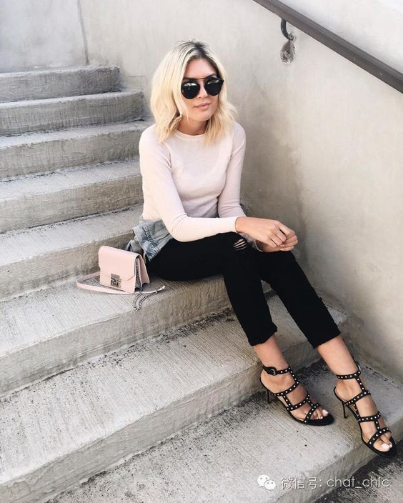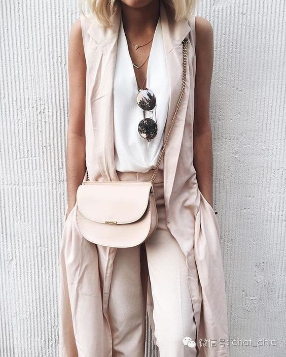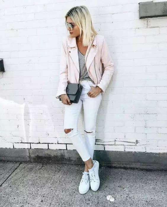 选择柔粉色上妆时,建议直接来点过渡,譬如一条金色的项链,一件灰色T恤,一双挂着的墨镜,这样会稍微减弱少女味,不怕气质HOLD不住。(还可以看看裸粉三色搭,将黄脸婆的世故,化作“白惠美”的气度)