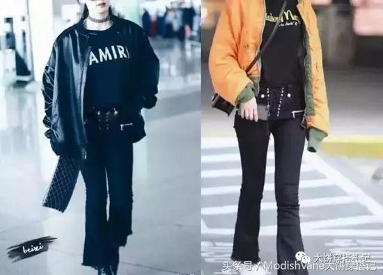 而这一搭,除了套路相同,连裤子都穿的同一款……