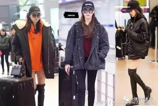 你会发现,oversized上衣+秀腿的各种雷同套路已经称霸了我国内的各大机场,做为“通关必备”,连本是大模的小明同学都摇身一穿变成为了国内的某线女星(你能认出来否?)。
