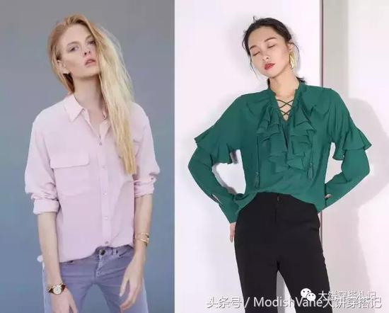 大胸姑娘因为会有一种侧面厚实、正面横向围度较宽的视觉感,所以在选择衬衫的时候,垂坠感非常非常重要!