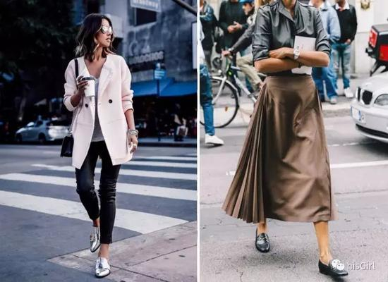 按自己喜欢的风格来,也未必就一定得穿尖头鞋或者简约的基础款,只要你清楚自己想要凸显的是什么!