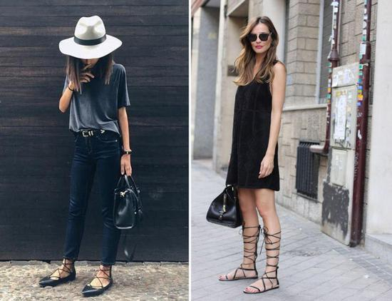即便你已经种草绑带鞋很久了,也请选择左边这种简单一点,并且很纤细的绑带,而不是绑的整个小腿都是!