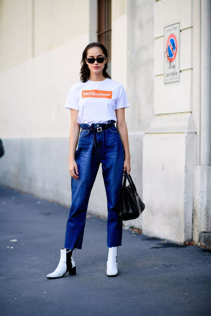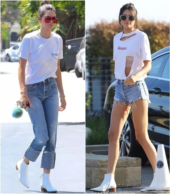 一些很基本款的搭配,只要有了小白靴的加持就能变得更特别。比如白T恤配牛仔裤。▼