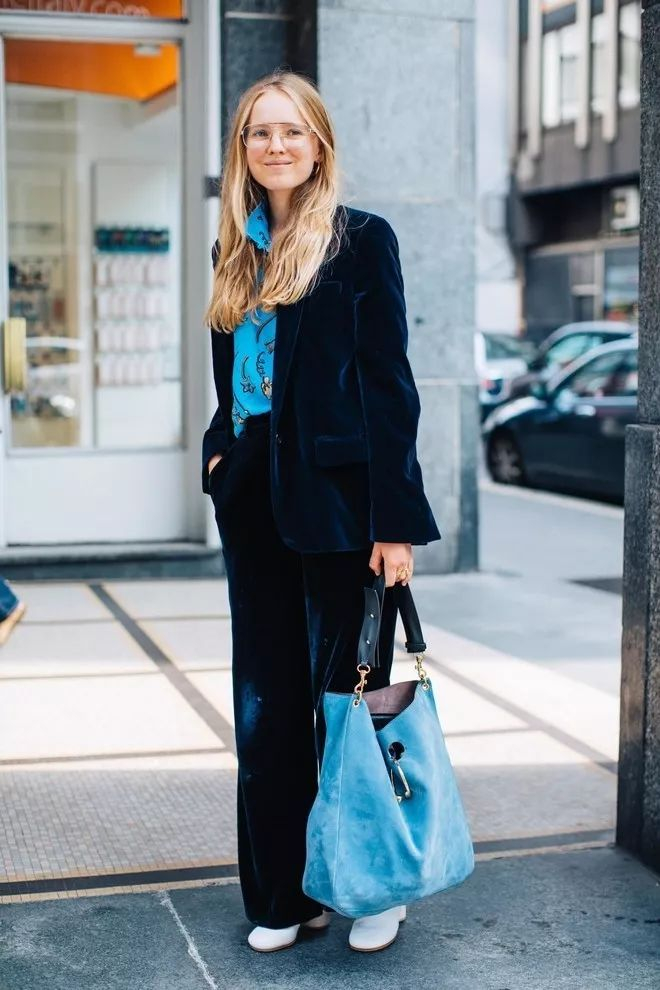 穿一身天鹅绒出门你敢不敢?总感觉自己很贵气或很老气,搭配小白靴会让你看起来更年轻更有活力。▼