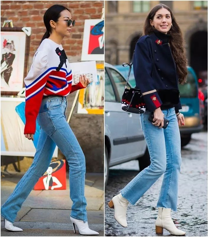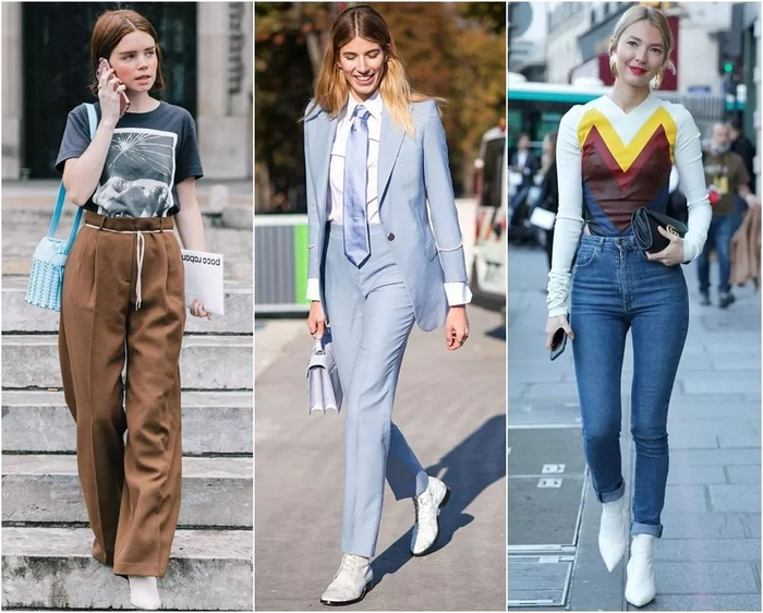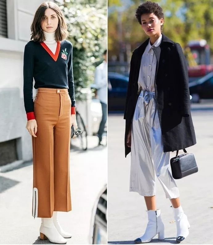 从上面这些图可以看出,小白靴几乎搭各种颜色各种款式的裤子都是好看的,牛仔裤、阔腿裤、丝绒裤等等。