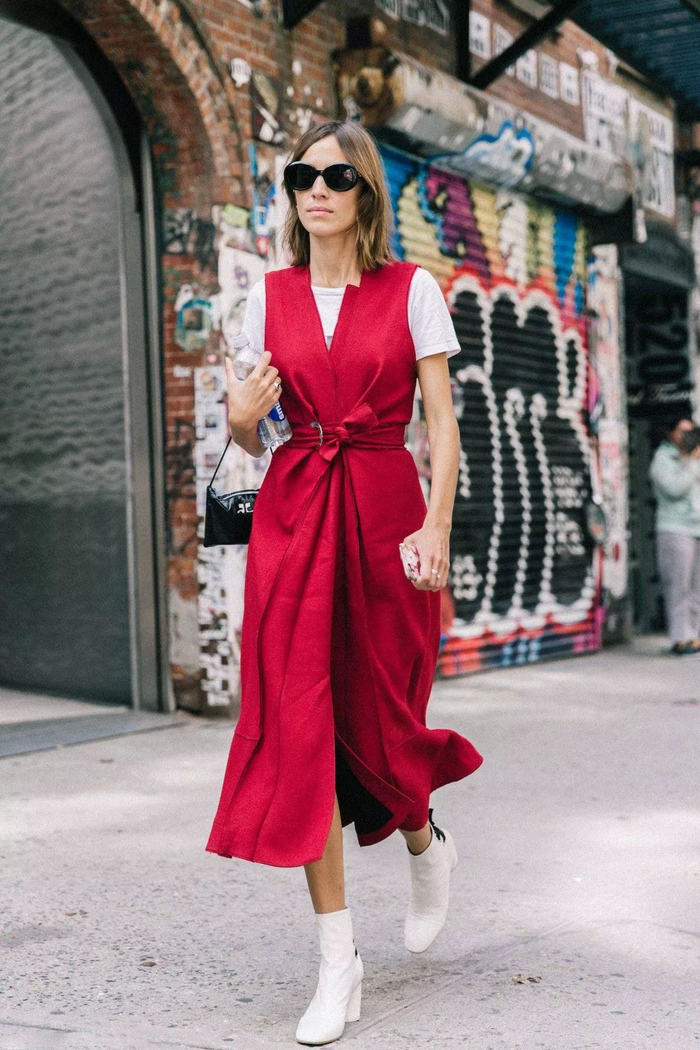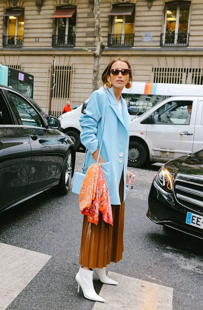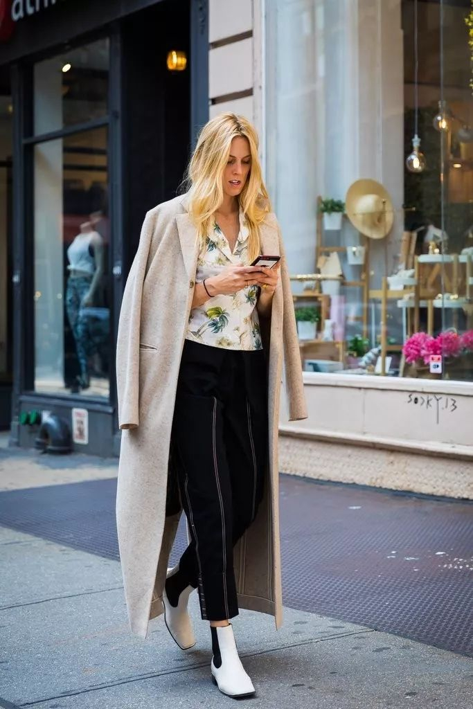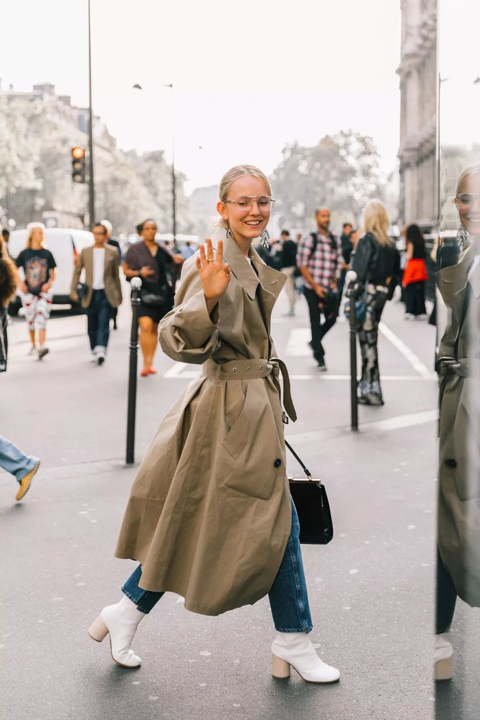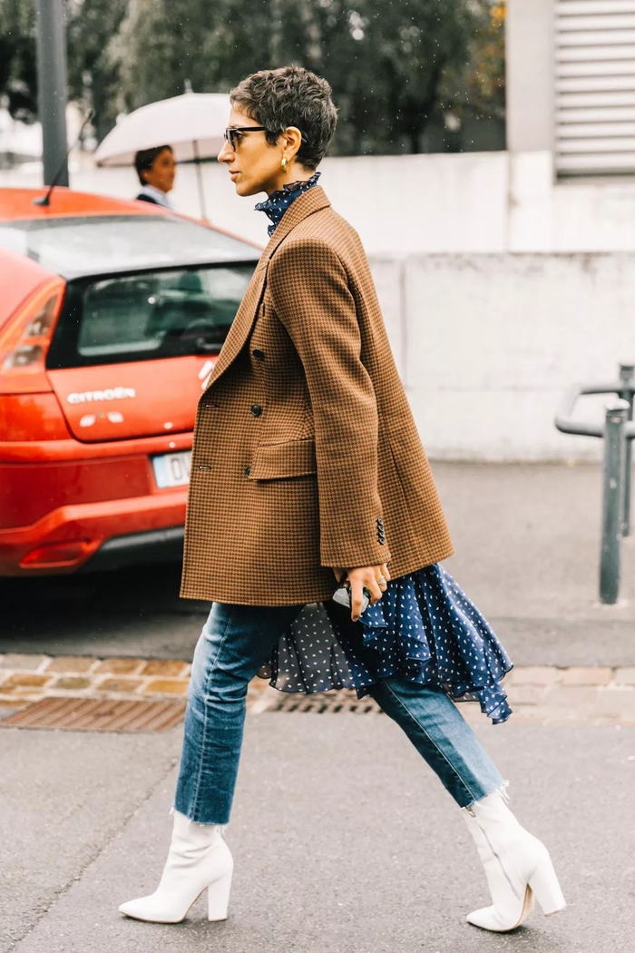 小白靴还有一个神奇的魔力,就是很容易让一些基本款和老气色穿出时髦感。