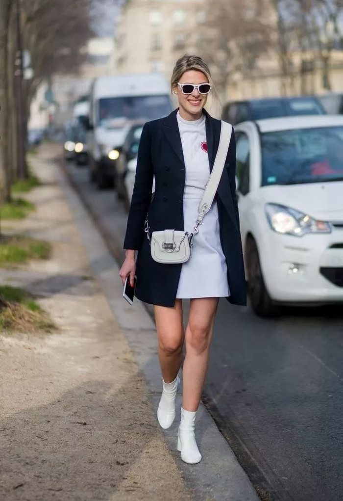 用它来搭短裙,各种款型的小短裙都可以,有没有发现意大利美人Diletta Bonaiuti很爱穿小白靴。▼