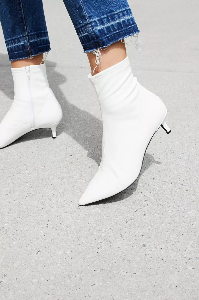 今年流行的小猫跟,在小白靴上也很多见。相比高跟款,小猫跟穿起来更轻巧舒适,走路也不容易累,特别适合穿不惯高跟鞋的同学。▼