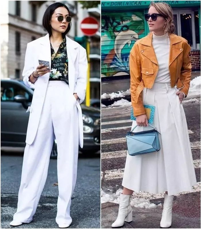 小白靴从去年就火得不行,时装精人脚一双,今年虽然各大品牌都在推大红靴,但小白靴热度还是丝毫不减。最近的时装周街拍里,也几乎随处可见它的身影。而且我个人觉得它的搭配空间比大红靴大很多。▼